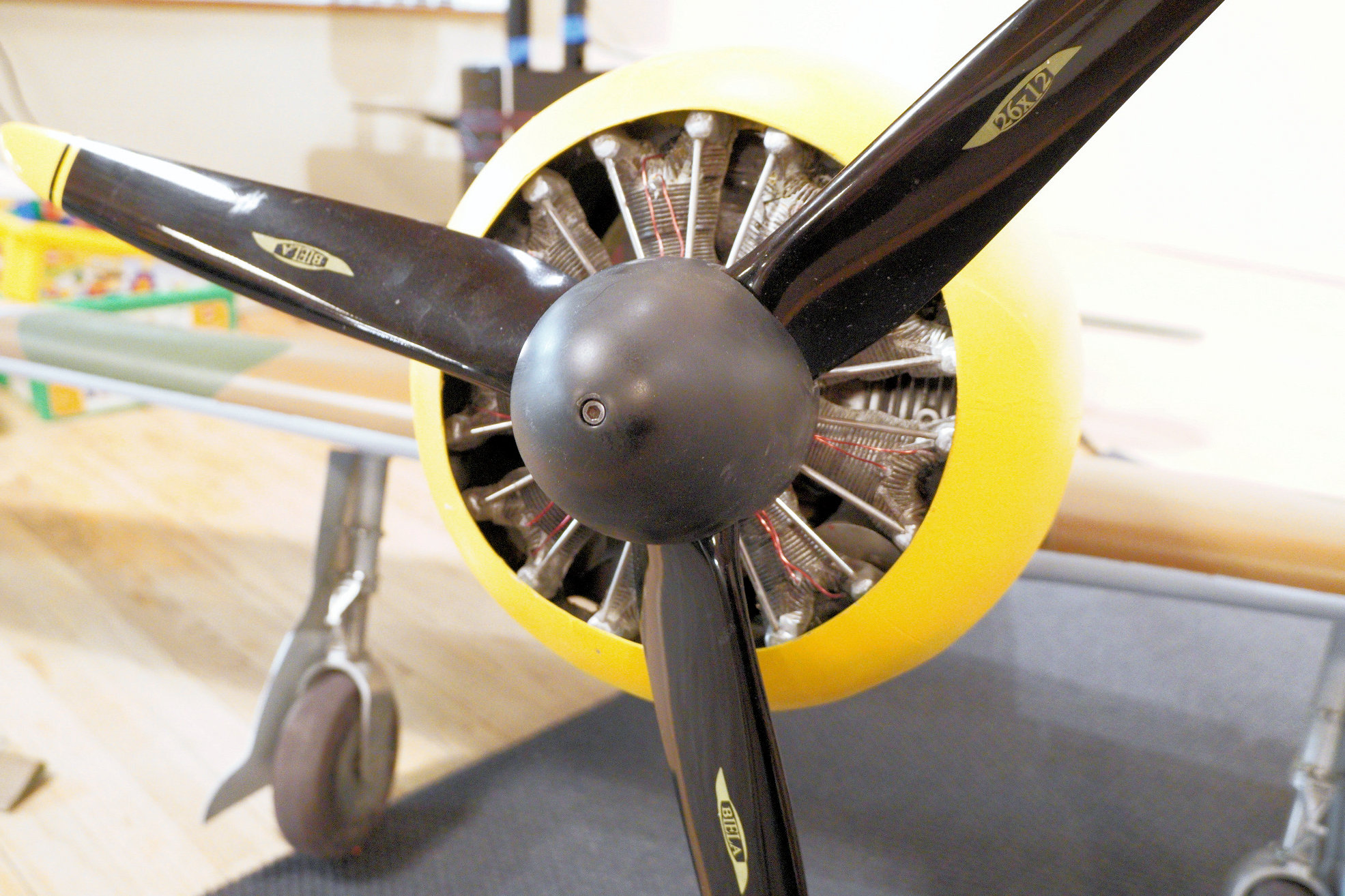 120cc twin powers a Biela 26x12 3-blade